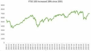 Gold has also outperformed other investments such as the FTSE 100 which has increased by 28% from 5,537 to 7,078.