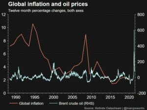 A month ago, yields were widely expected to rise in the second half, possibly reaching 2% by year-end. Now, the consensus thinks yields may have peaked for the year. (Graphic: Oil prices and global inflation, https://fingfx.thomsonreuters.com/gfx/mkt/dgkvlrjorvb/Pasted%20image%201625556400903.png)